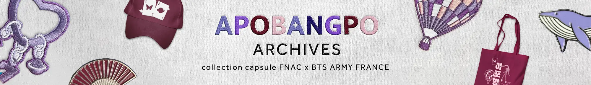 APOBANGPO ARCHIVES est une collection exclusive de textiles et d’accessoires mêlant l’univers artistique de BTS et des motifs traditionnels coréens. Cette collection, créée à l’occasion du comeback de Arirang, est le fruit d’une collaboration entre BTS Army France et la Fnac.